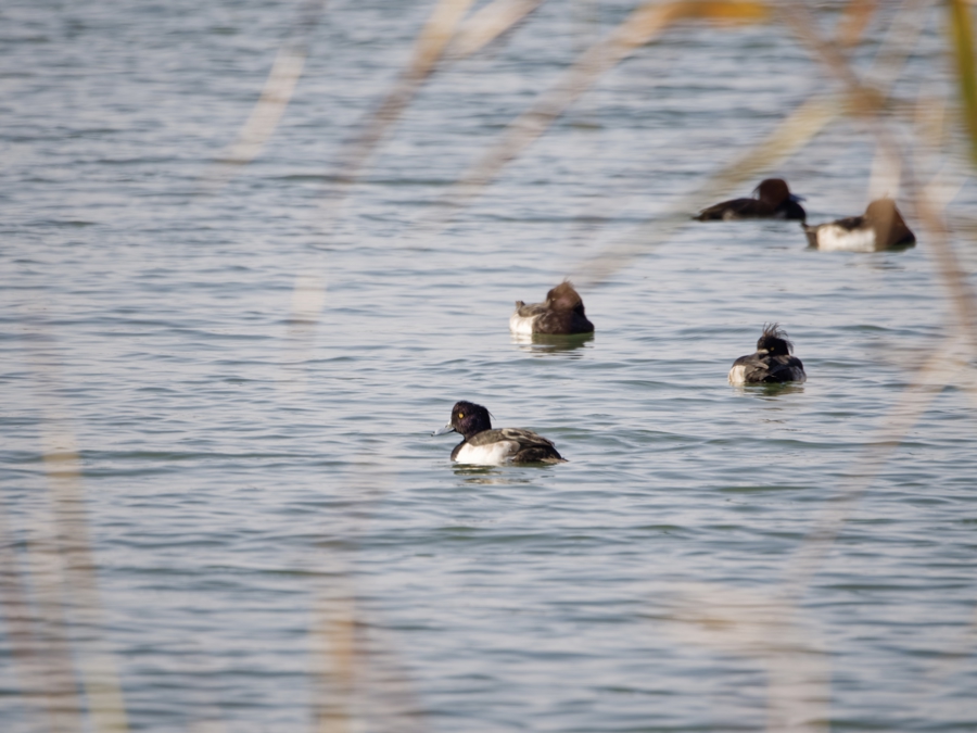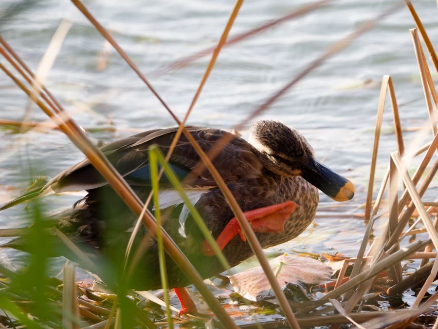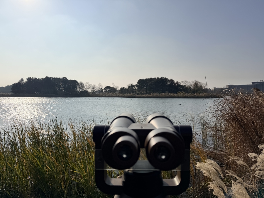 顺时针绕着湖边走到正中的观鸟点,便能望见远处宽阔的湖面,有上百只野鸭畅游其中。起初,用肉眼来看,上百米开外的野鸭们只能被笼统地称为“鸭群”。若是用8倍以上的望远镜,拉近了仔细看,你会发现它们长得各有不同。