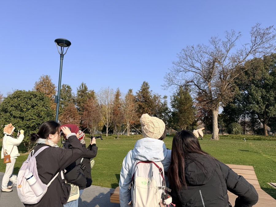 “就算前一天来看,和第二天看到的鸟也不完全相同。这也是很有意思的地方。”这是朱老师带队到星愿湖观鸟的第8年,每年12月,她都会跑来这好几次。“观鸟一年四季都可以,但是夏天树太茂密,白天又太热,鸟就不怎么活动。冬天树叶都掉光了,更适合观鸟。”