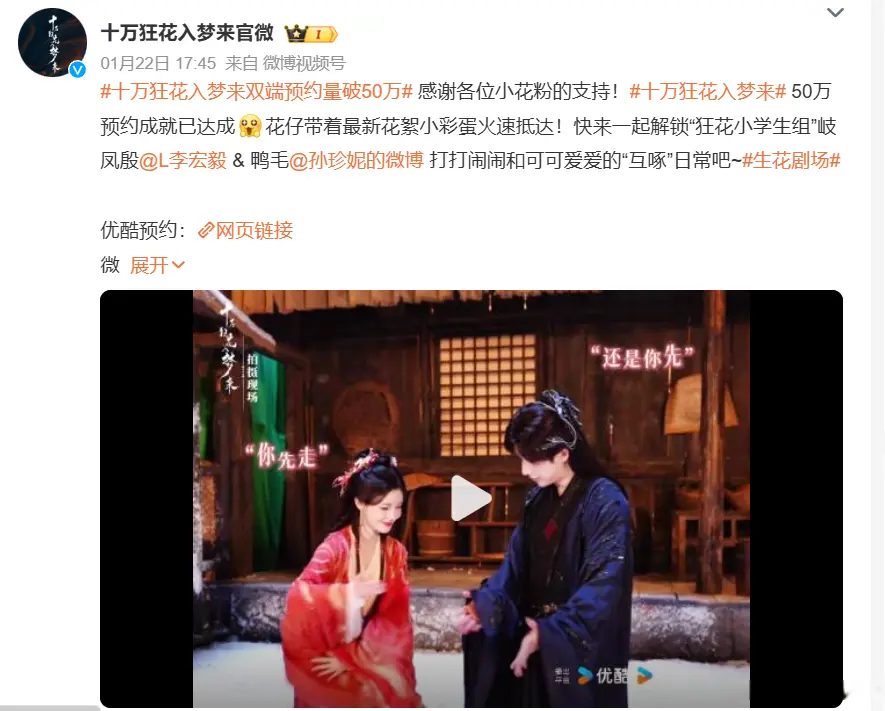 虽说《十万狂花入梦来》这部作品和《花千骨》是同一个作者,但后者已经播出十年多,作为姊妹篇也没有贴着爆剧营销。